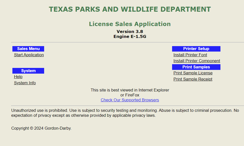 If using the Thin Client device, select the Click Here to Enter License Sales System link.